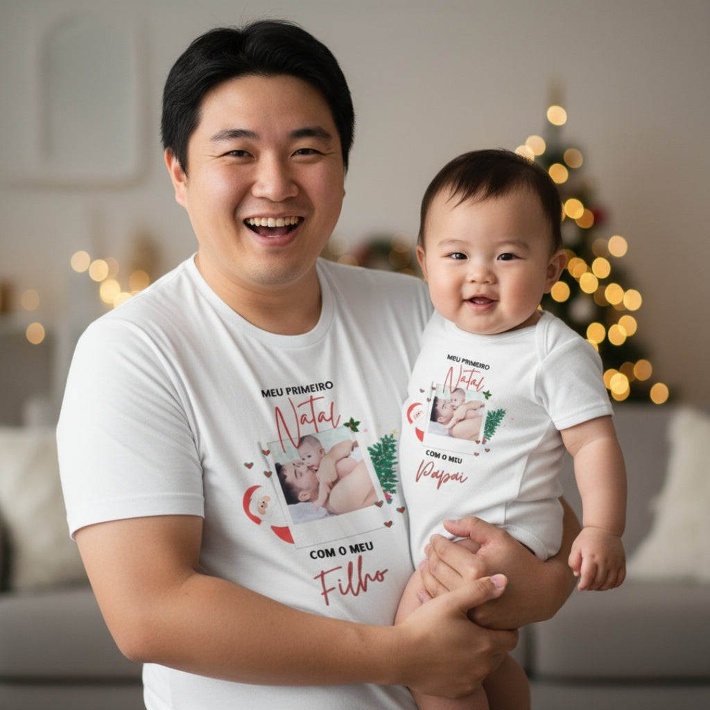 Conjunto Camiseta e Body de Bebê - Primeiro Natal com o Papai