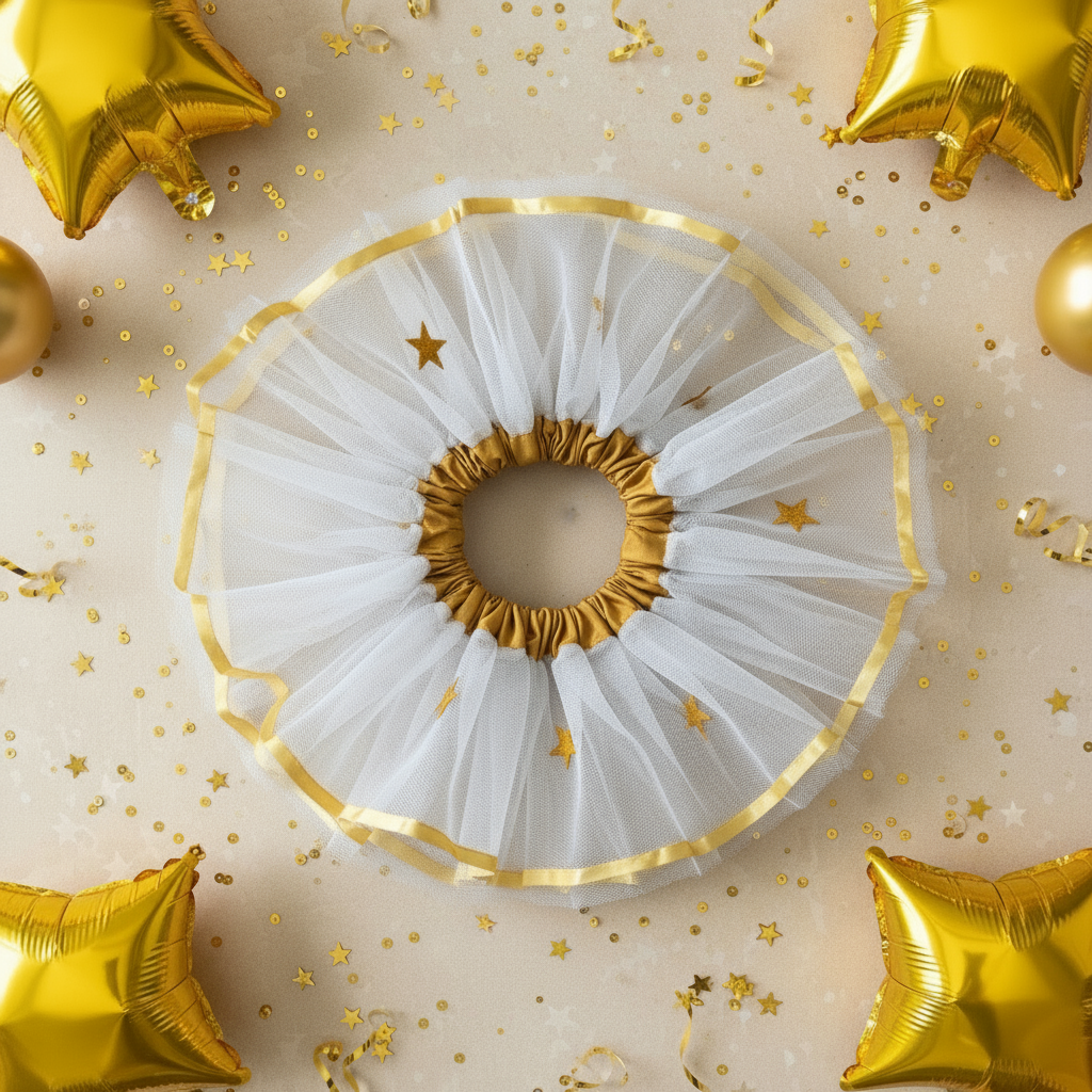 🎁 Kit Completo Feminino: Body Personalizado Refletivo + Tênis com Glitter + Saia Tutu Dourada + Laço Branco