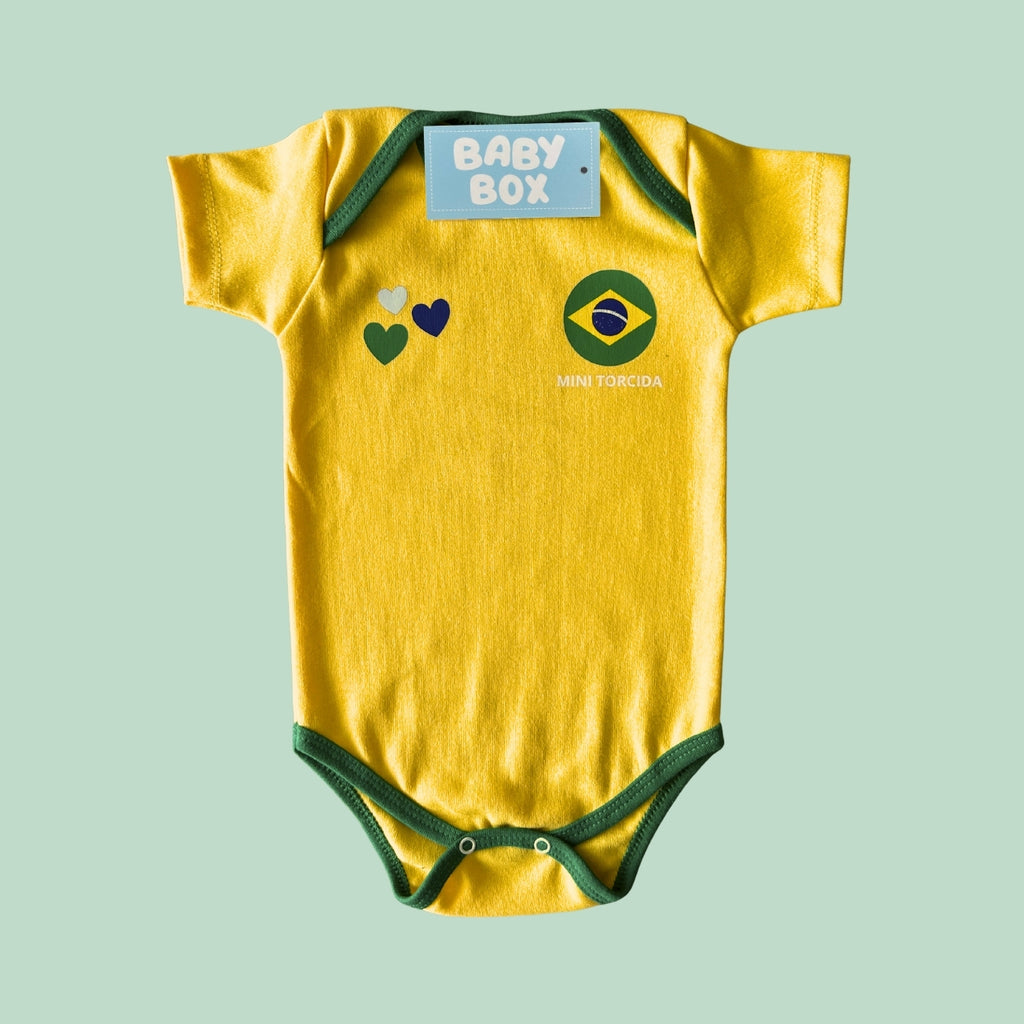 O look completo para o seu pequeno torcedor arrasar nesta Copa do Mundo! 🇧🇷⚽ O Conjunto do Brasil Personalizado traz body, tênis e shorts para vestir seu bebê com estilo e exclusividade do primeiro ao último minuto do jogo.