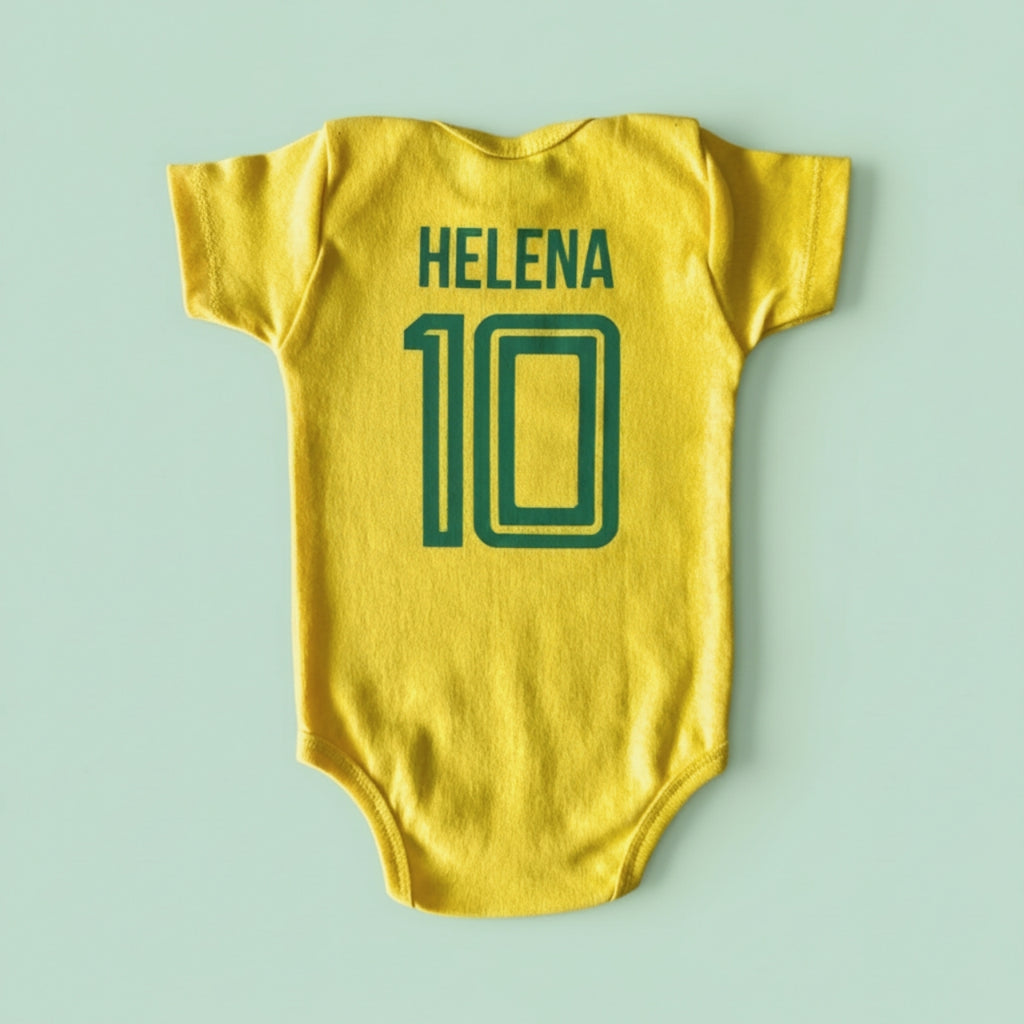 Personalização Exclusiva ✨ Escolha o nome do bebê e o número da sorte para criar um conjunto único e especial. Cada peça é feita sob medida para o seu pequeno campeão ou campeã brilhar na torcida com muito charme! 💛